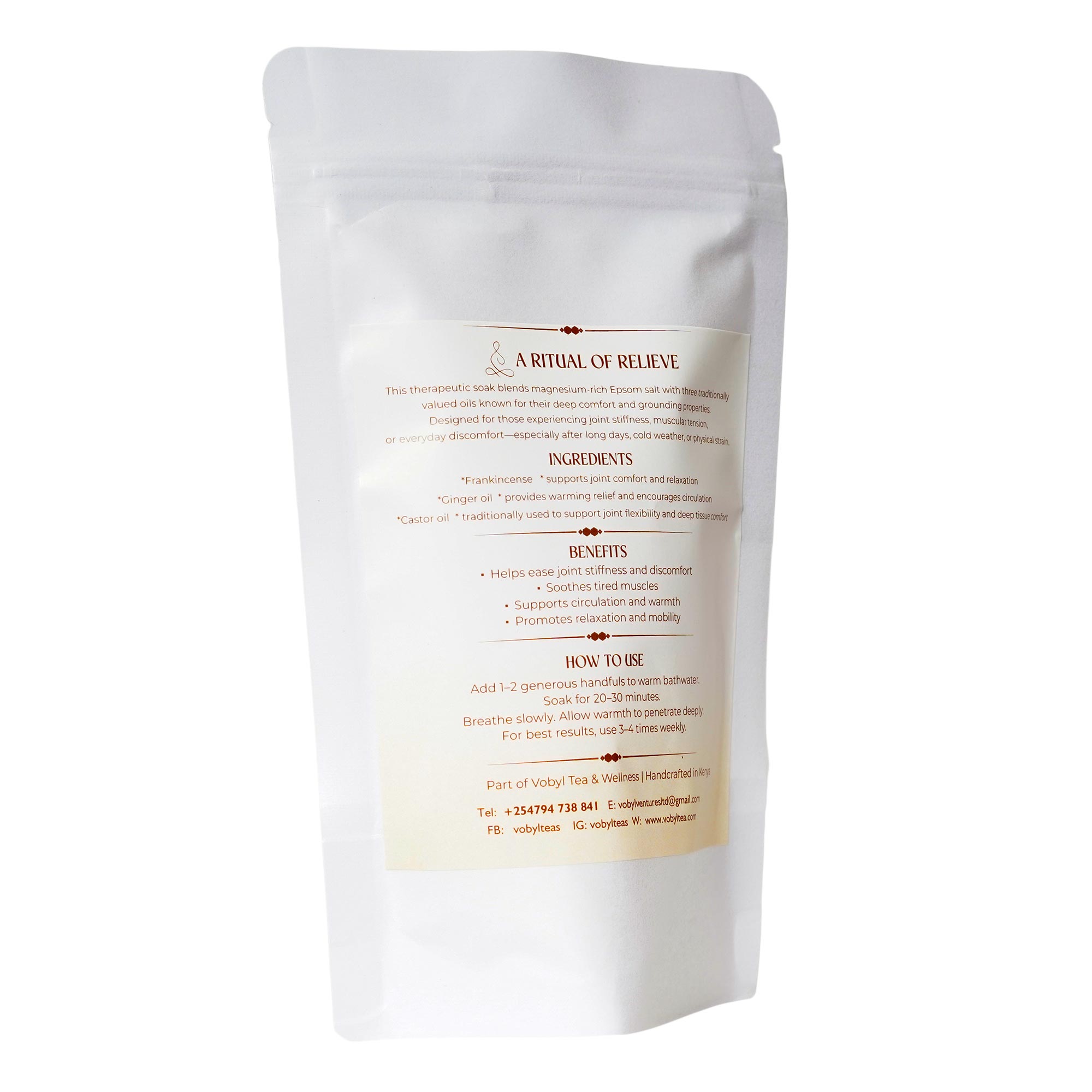 Epsom salt delivers magnesium, which supports muscle relaxation and helps release tension. Ginger adds a gentle warming sensation that comforts stiff, tired areas β making this soak ideal after long days, physical strain, or cold weather.